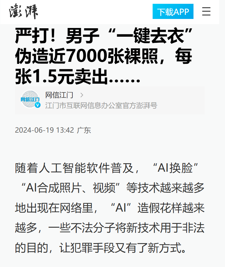 “真是缺德到家了!”北京海淀,小伙研发出ai一键去衣技术,只需1.5元就可以将一张正常照片变成裸照。哪怕是明星网红,都能在他的操作下“一丝不挂”。小伙利用这门技术制作出了7000多张女性裸照。落网后忏悔不已,直呼知错了。网友:不配得到原谅!